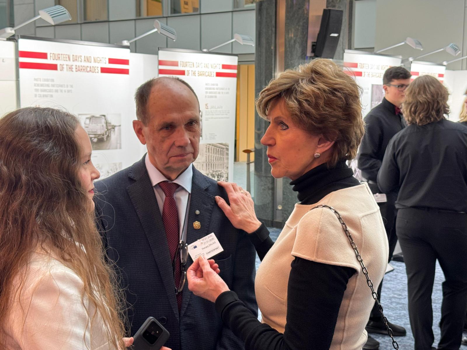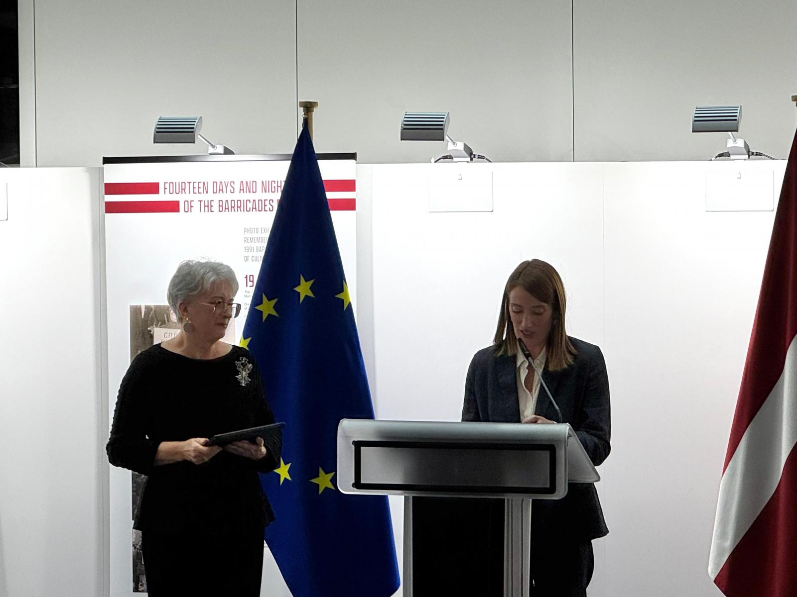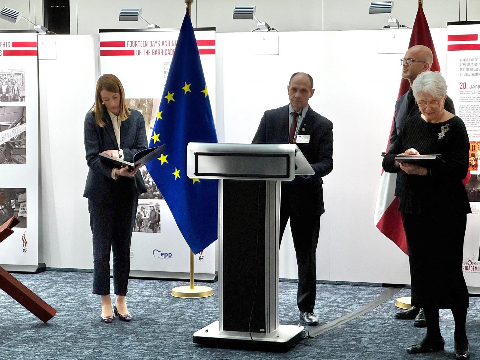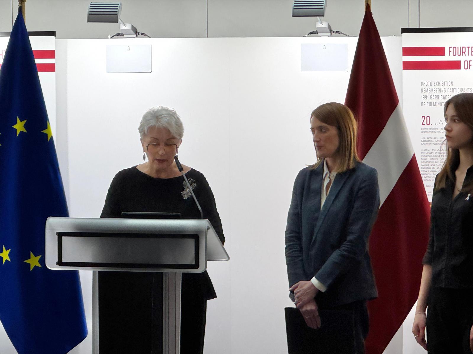 2026. gada 27.–29. janvārī Eiropas Parlamentā Briselē – fotoizstāde “Barikāžu 14 dienas un naktis”. Eiropas Parlamentā Briselē bija apskatāma fotoizstāde “Barikāžu 14 dienas un naktis” (Fourteen Days and Nights of the Barricades), kas veltīta 1991. gada barikāžu 35. gadadienai. Izstāde atgādināja par Latvijas neatkarības atjaunošanas izšķirošo posmu – nevardarbīgo pretošanos PSRS centieniem pārņemt kontroli pār stratēģiski nozīmīgiem objektiem Latvijā laika posmā no 1991. gada 13. līdz 26. janvārim. Izstāde bija izvietota Eiropas Parlamenta Spinelli ēkas 3. stāvā (Spinelli Distribution Area – 3D, blakus VoxBox), un tās atklāšanā uzrunas teica Eiropas Parlamenta prezidente Roberta Metsola, Eiropas Parlamenta deputāte Sandra Kalniete un Barikāžu muzeja vadītājs Renārs Zaļais, savukārt muzikālu noskaņu pasākumam piešķīra jauniešu koris “Mīts”.